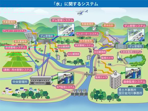 ダムや河川や用水など、水を安定供給を支えるためのシステムの構築・保守サポートを行っています。